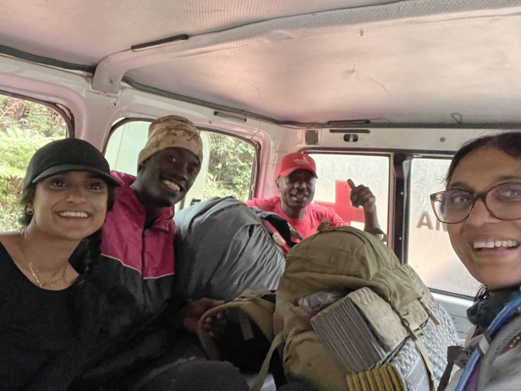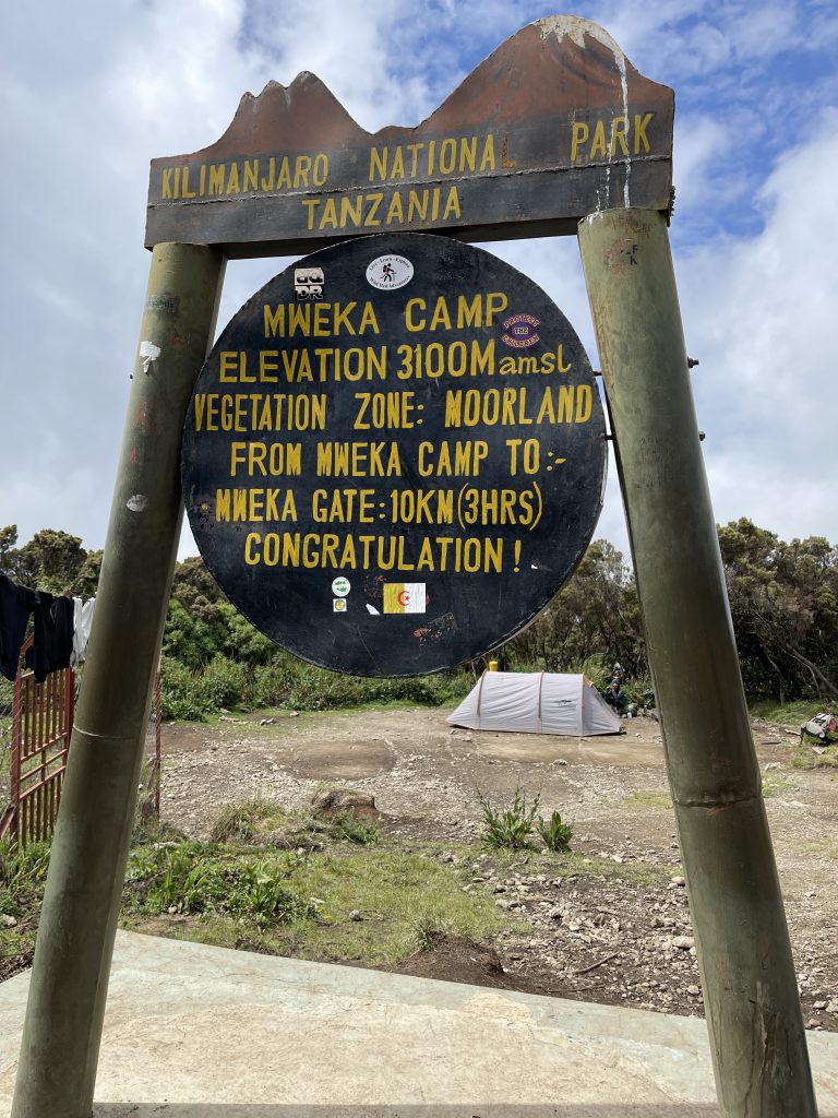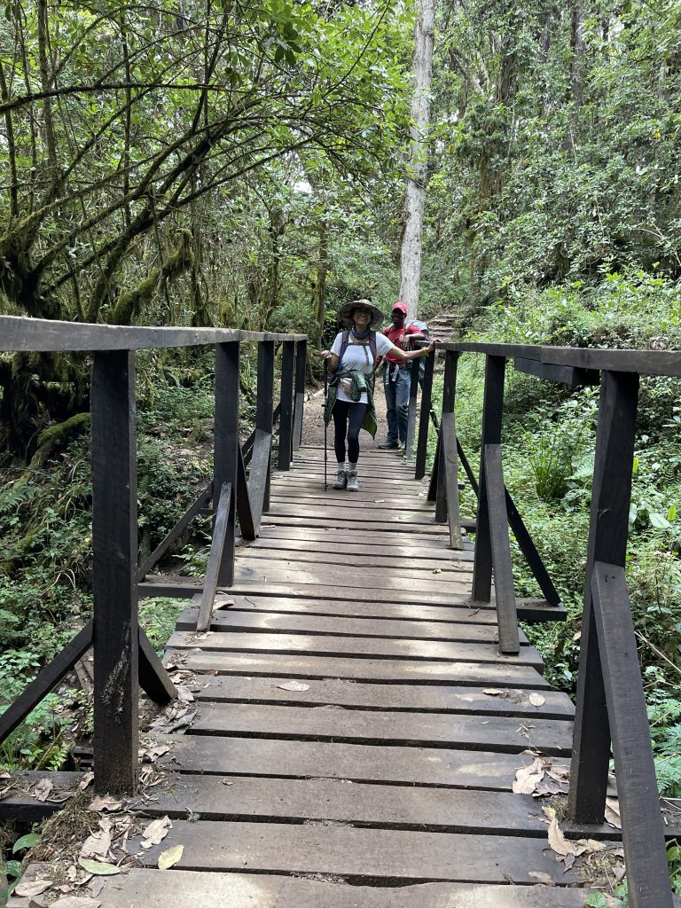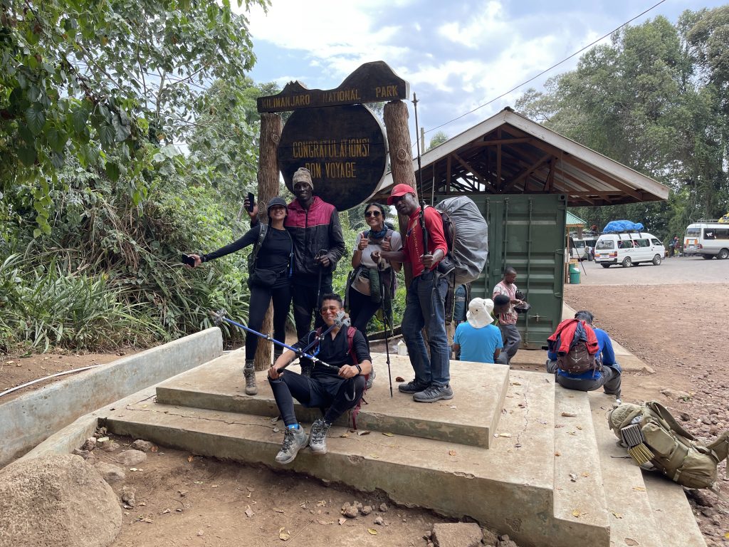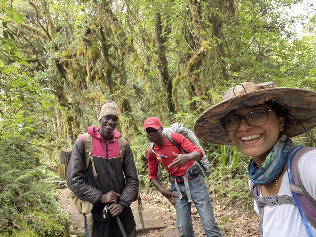 We pass through a rainforest for the last time. The thundershowers allegedly experienced last night seem to have passed us by as we slept. The forest’s ground was slippery and just a little moist. The roots of the big, tall trees crossed over each other like a road map, so we had to be extra careful. For the first time ever, I tripped and fell. It’s a local saying, said Simon, that if you don’t fall, you haven’t climbed Kilimanjaro. On Kilimanjaro today, I stumbled and scraped my bum. We’re not walking POLE POLE anymore. Enock and Simon walk with us and we take some last pictures together.