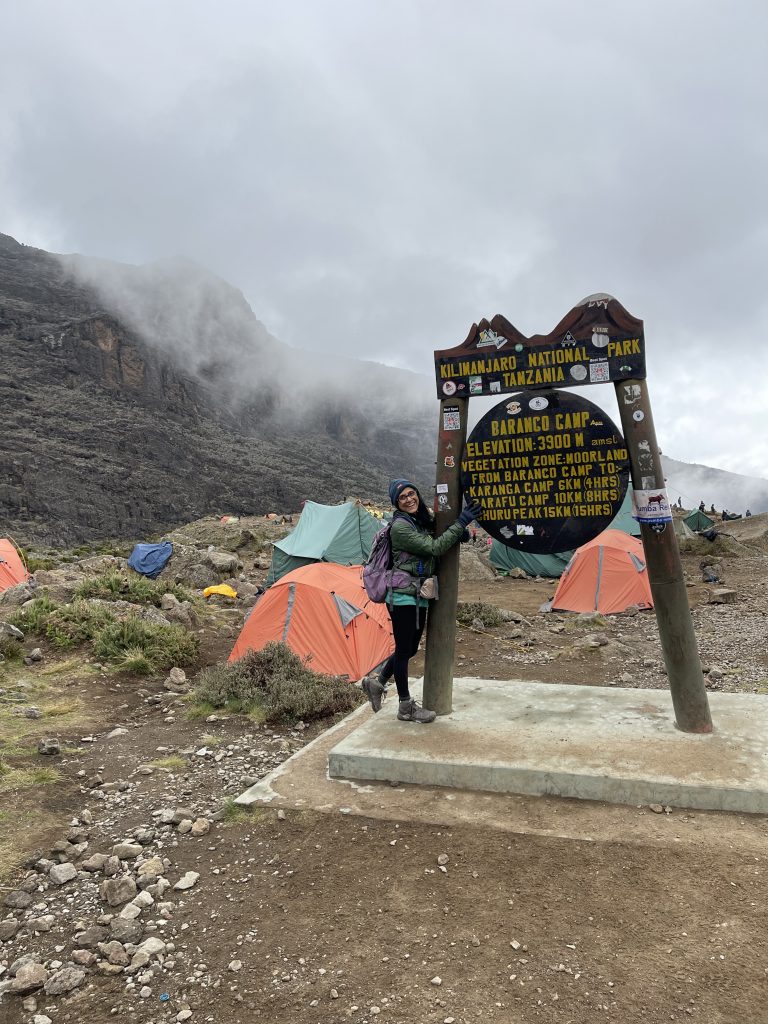 The landscape becomes more magnificent as we get closer to Barranco. The Lobelia Deckenii plant, which grows in the valleys of East Africa, was everywhere, and Dendrosenecio trees, also known as Giant Groundsels, stood out against the mist to create an surreal atmosphere. The area seemed magical. When we get to Barranco, we are facing the wall. Barranco Wall, a dreaded structure! As soon as we get to our tents, the routine begins. Now that Mount Kilimanjaro appeared so close, we knew the day of the summit was drawing near. Stay hydrated, eat healthily, and rest when you can!